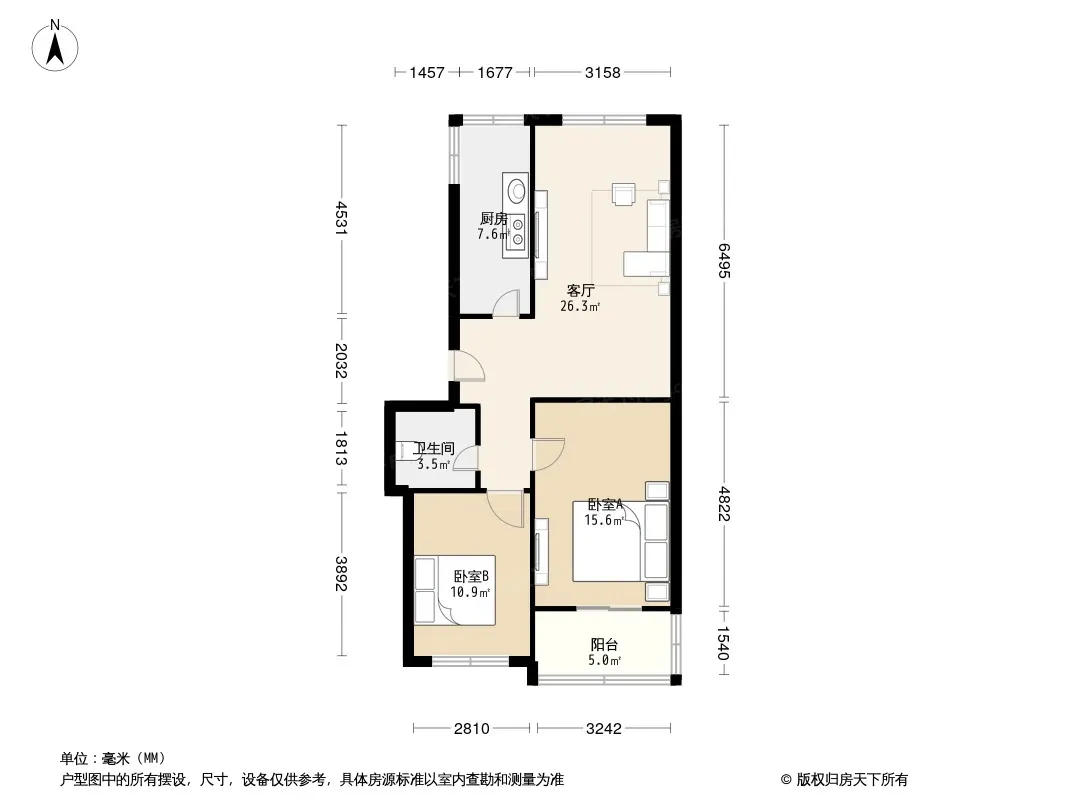 户型齐全,主打明厨,双阳台,主卧朝南二居