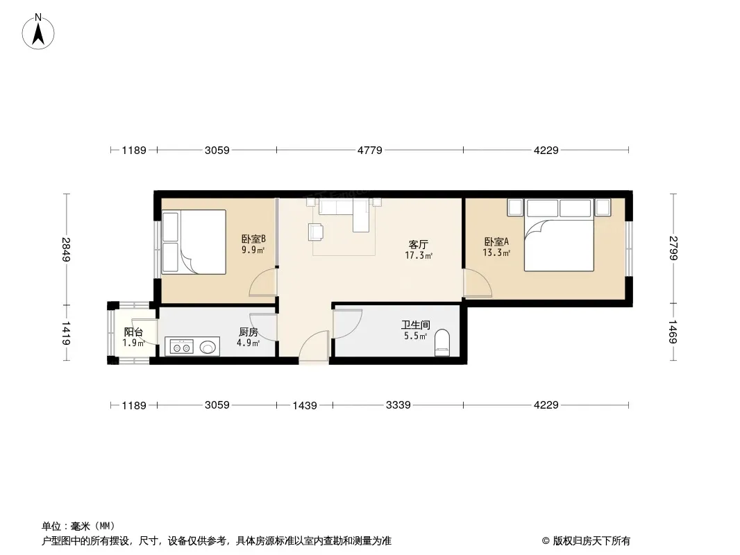 户型齐全,主打户型方正,双阳台二居