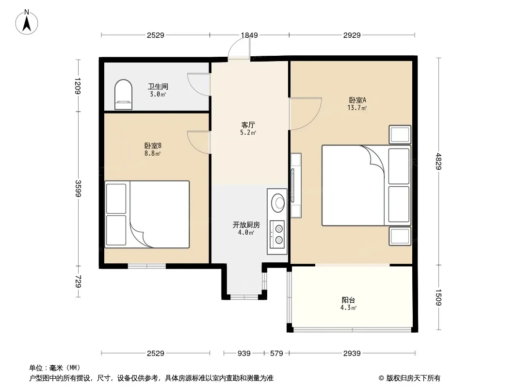 户型齐全,主打户型方正,明厨,客厅朝南,双卧朝南,主卧朝南二居
