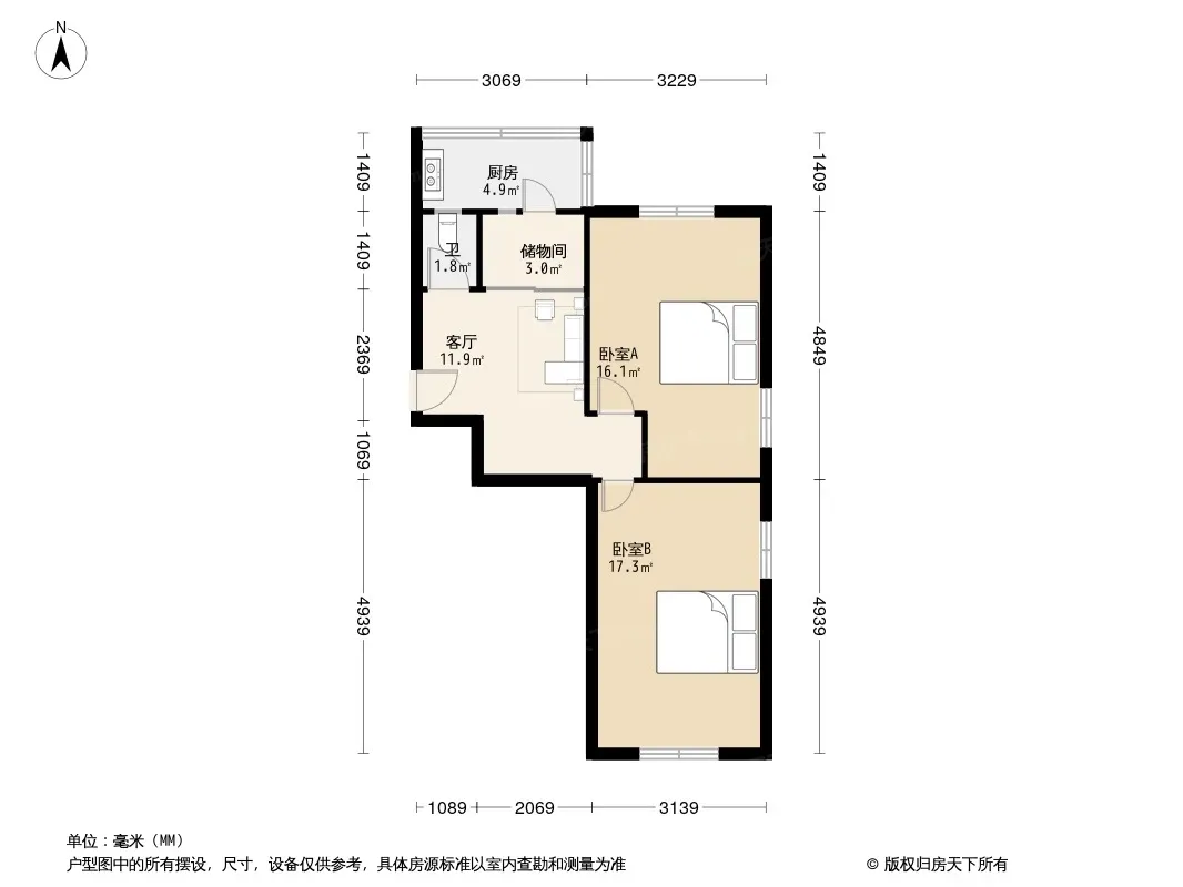 户型齐全,主打双卧朝南,主卧朝南二居