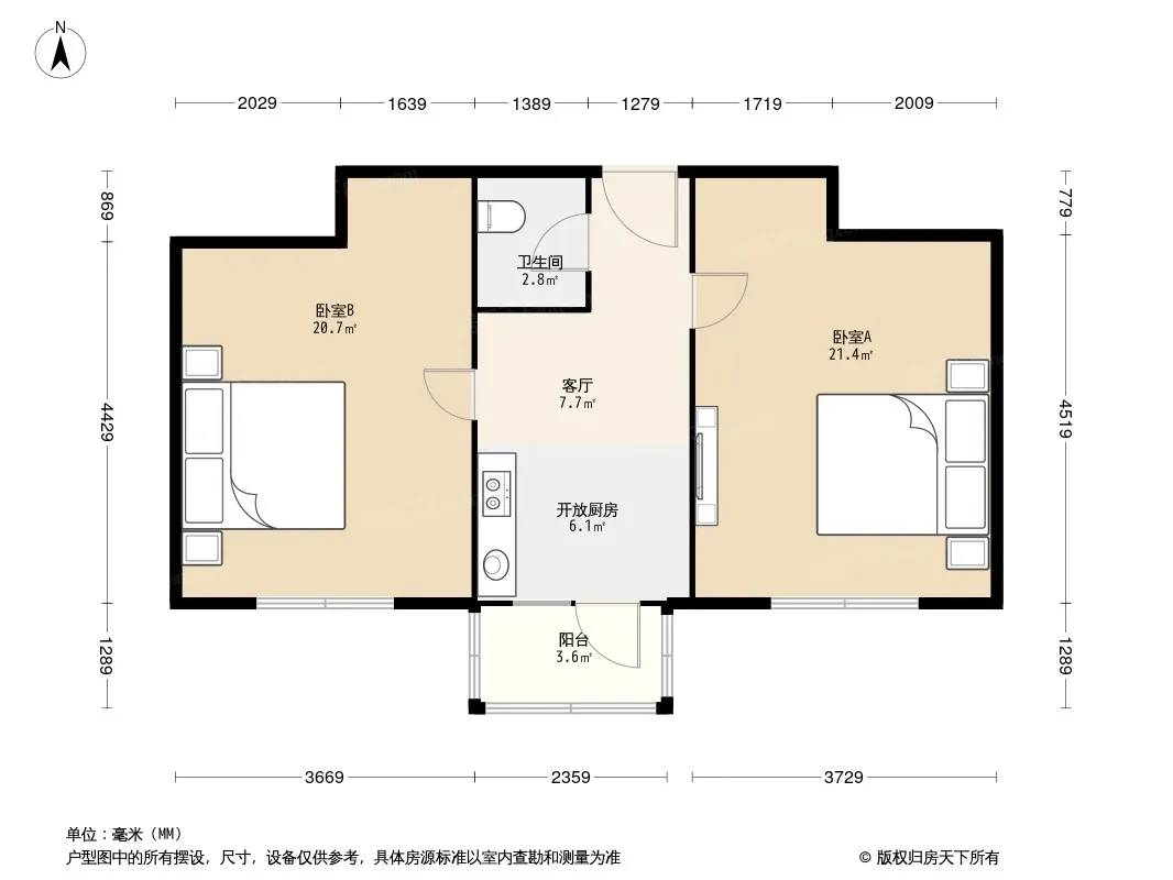 户型齐全,主打双卧朝南,主卧朝南二居