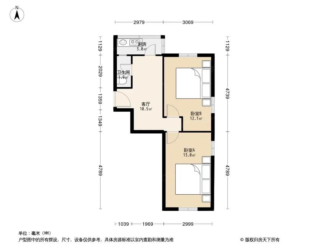 户型齐全,主打双卧朝南,主卧朝南二居
