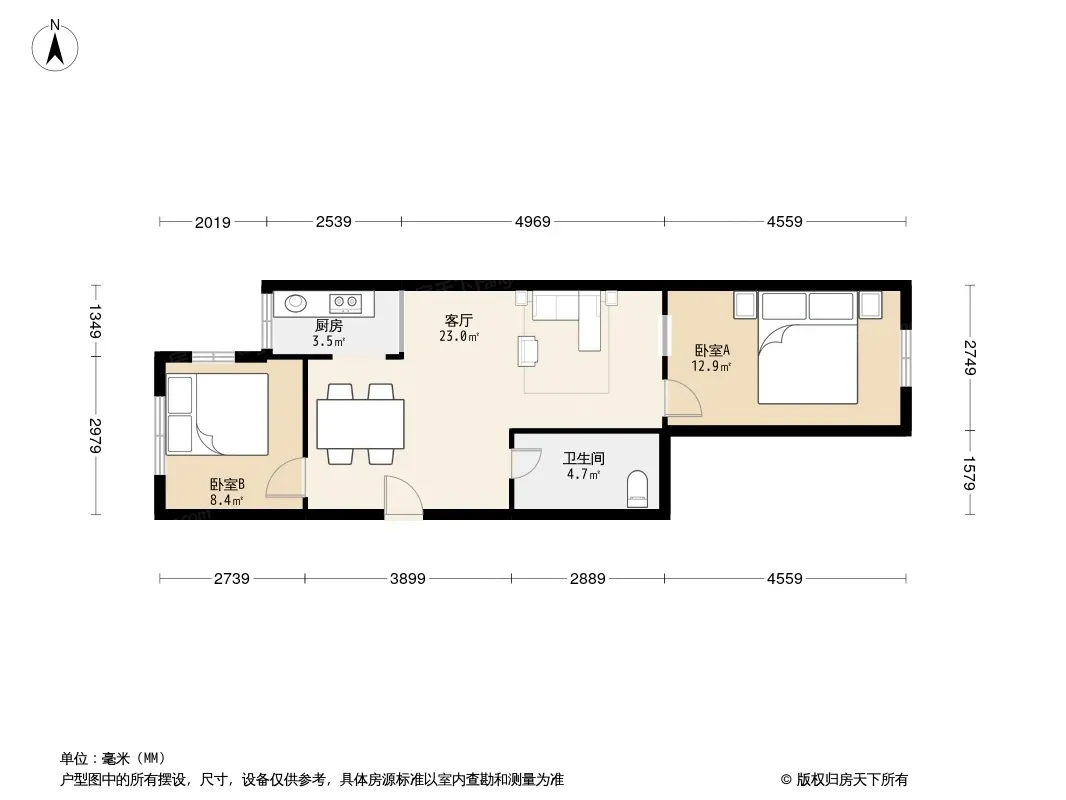 户型齐全,主打明厨,客厅朝南二居