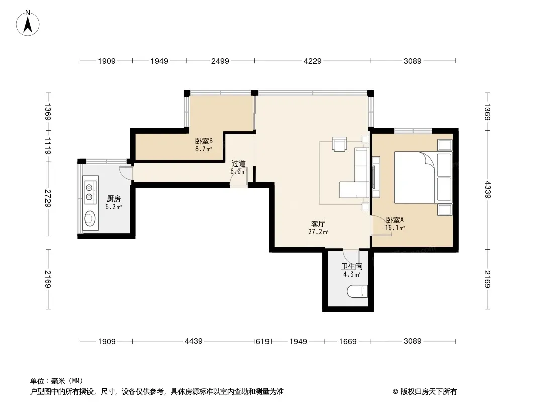 户型齐全,主打明厨,客厅朝南二居