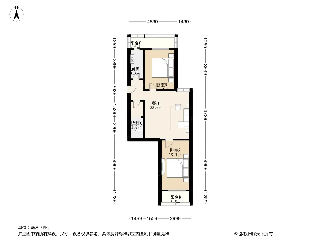 户型齐全,主打明厨,客厅朝南,双阳台二居