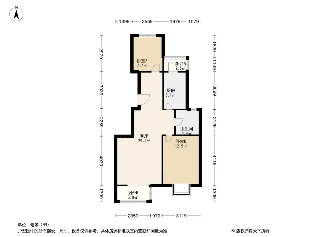 户型齐全,主打户型方正,明卫,客厅朝南,双卧朝南,主卧朝南二居