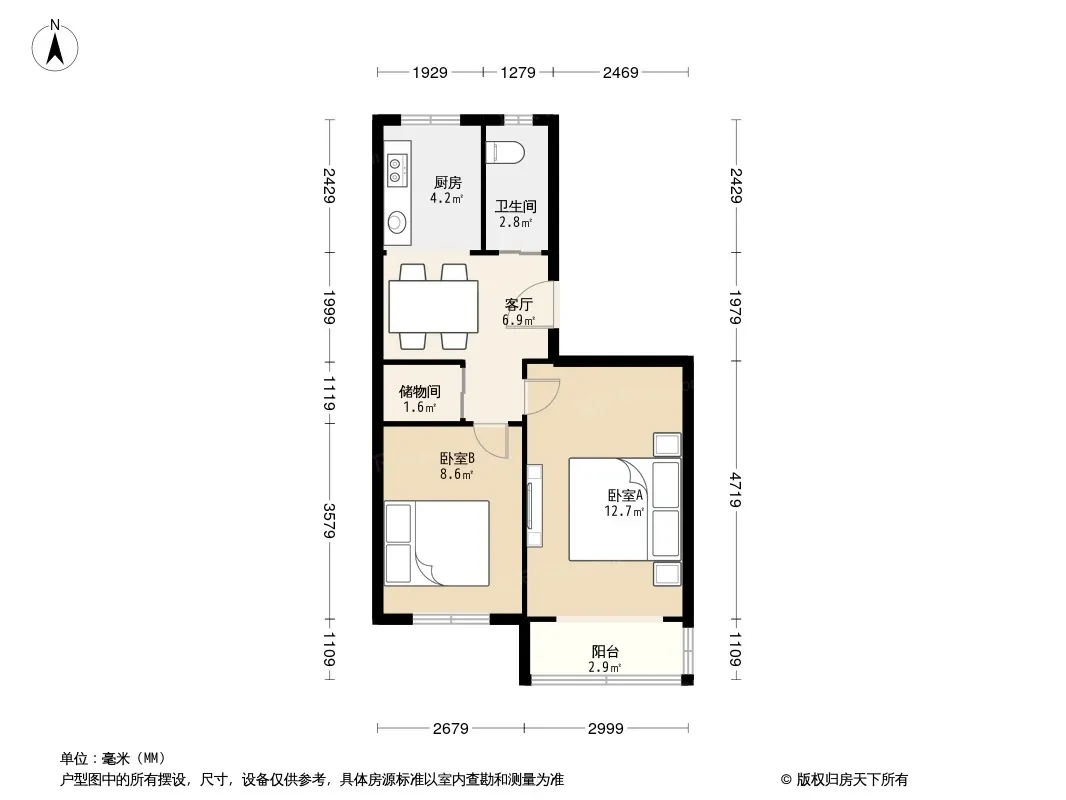 户型齐全,主打明厨,双卧朝南二居