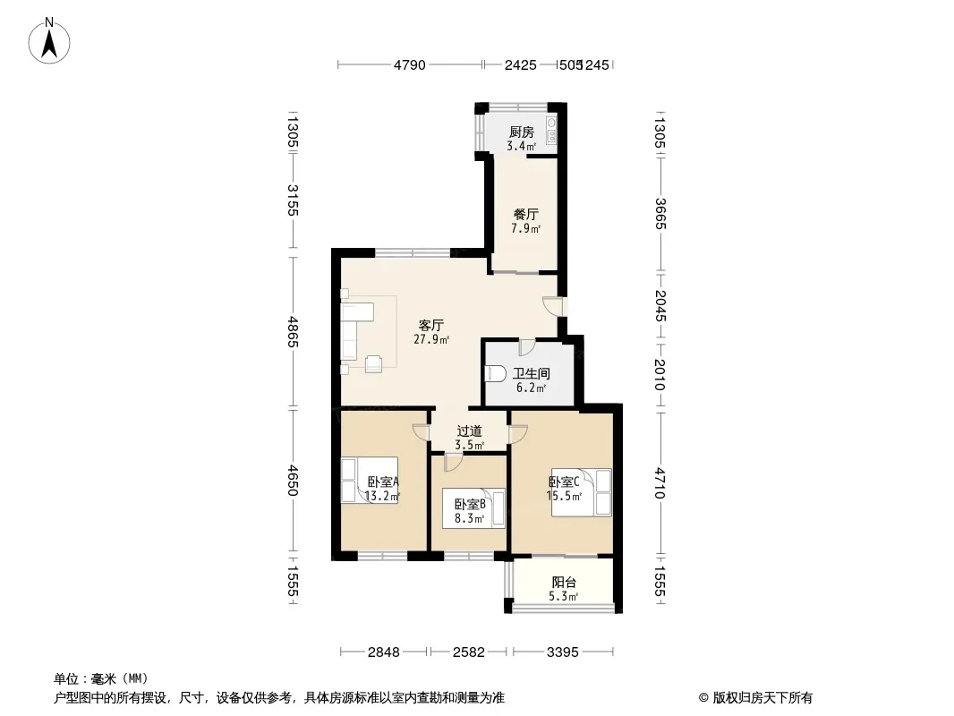 户型齐全,主打明厨,客厅朝南,主卧朝南,独立衣帽间三居