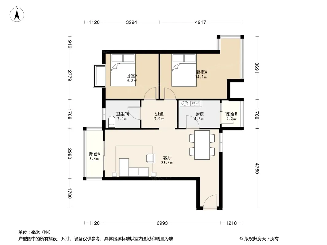 户型齐全,主打户型方正,明卫,客厅朝南,双阳台,主卧朝南二居