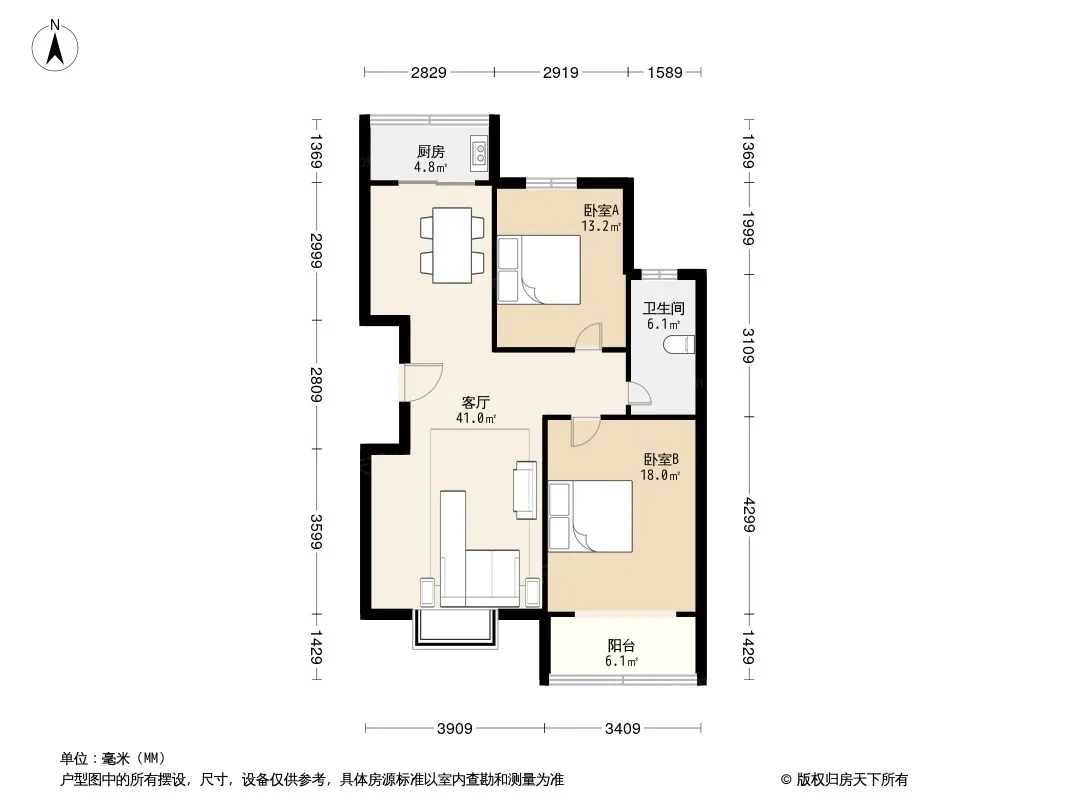 户型齐全,主打户型方正,明卫,客厅朝南,双卧朝南二居