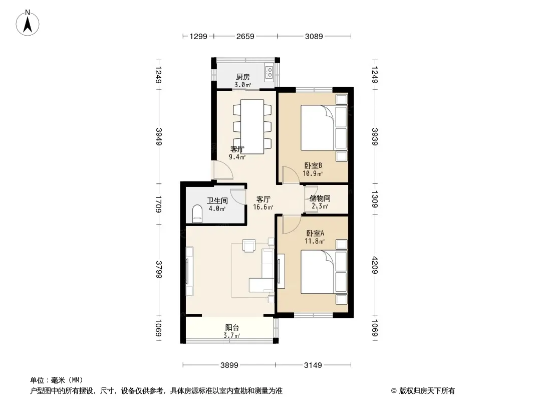 户型齐全,主打户型方正,明卫,明厨,主卧朝南二居