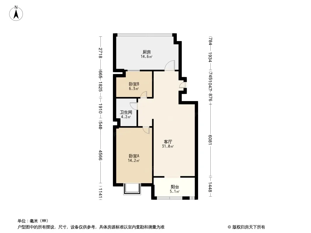 户型齐全,主打户型方正,主卧朝南二居