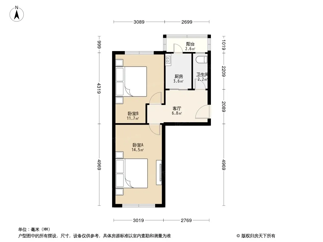 户型齐全,主打户型方正,明厨,客厅朝南,主卧朝南一居