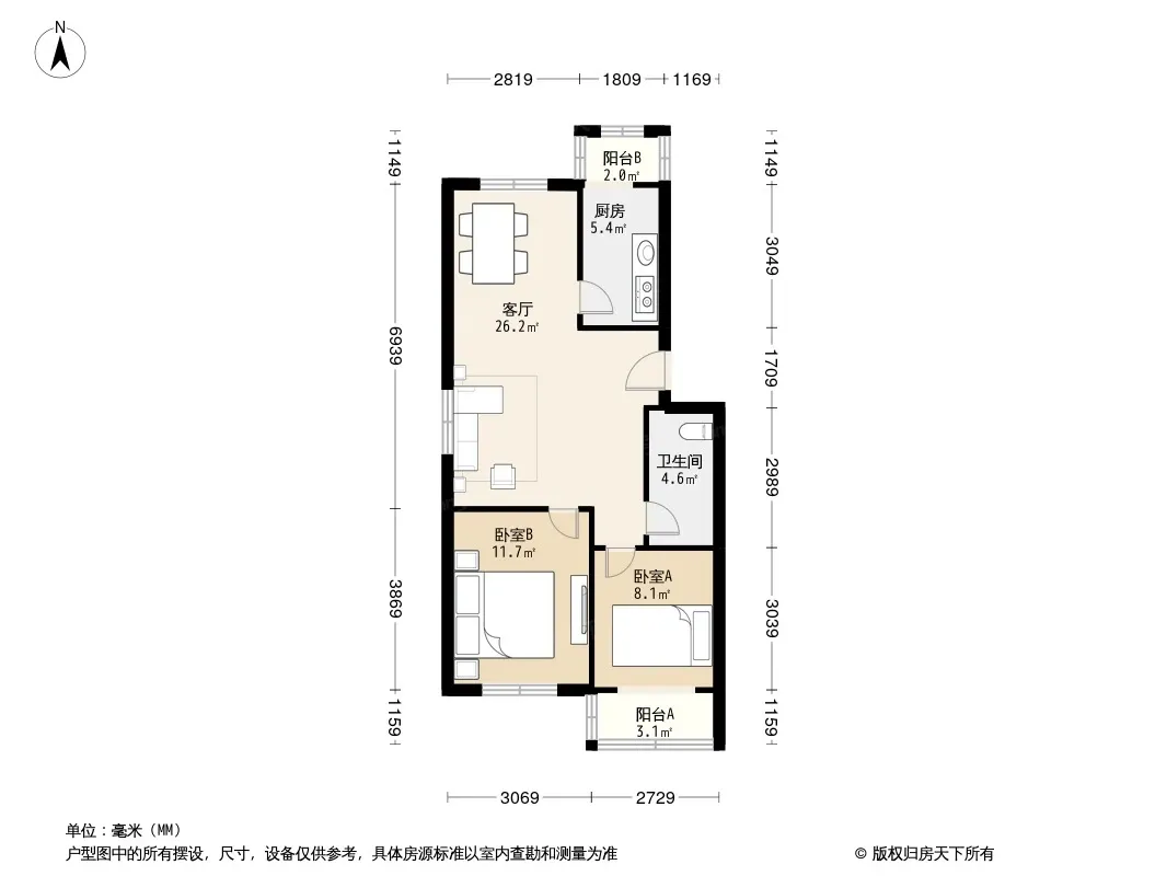 户型齐全,主打户型方正,客厅朝南,双阳台,主卧朝南二居