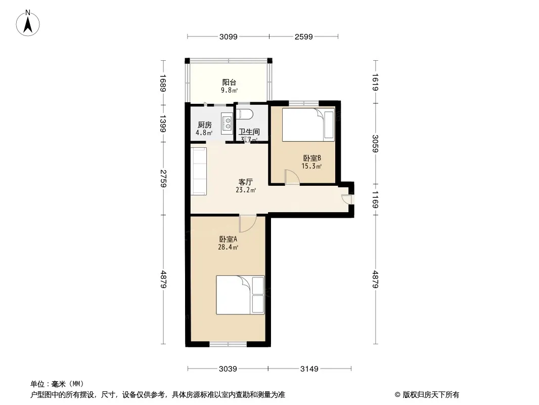 户型齐全,主打户型方正,明卫,明厨,主卧朝南二居