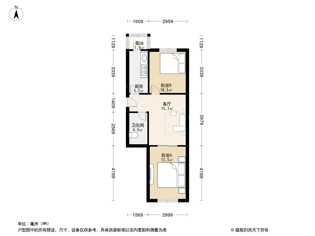 户型齐全,主打户型方正,明厨,主卧朝南二居