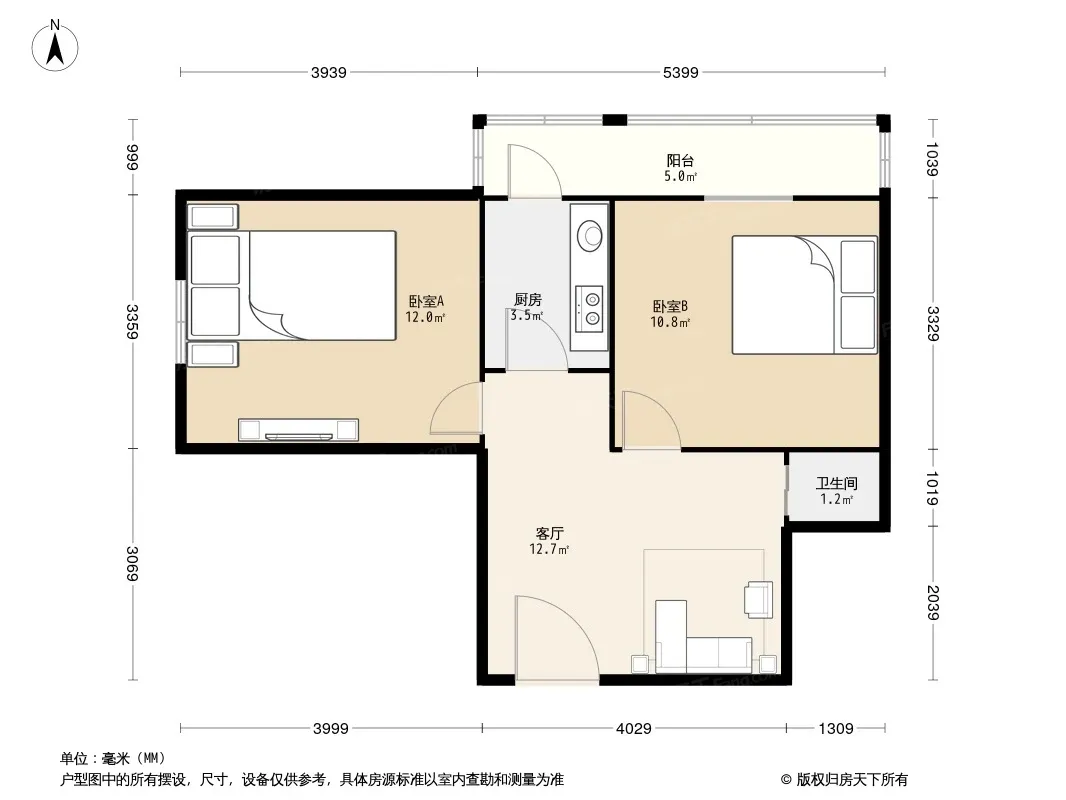 户型齐全,主打户型方正,明厨,主卧朝南二居