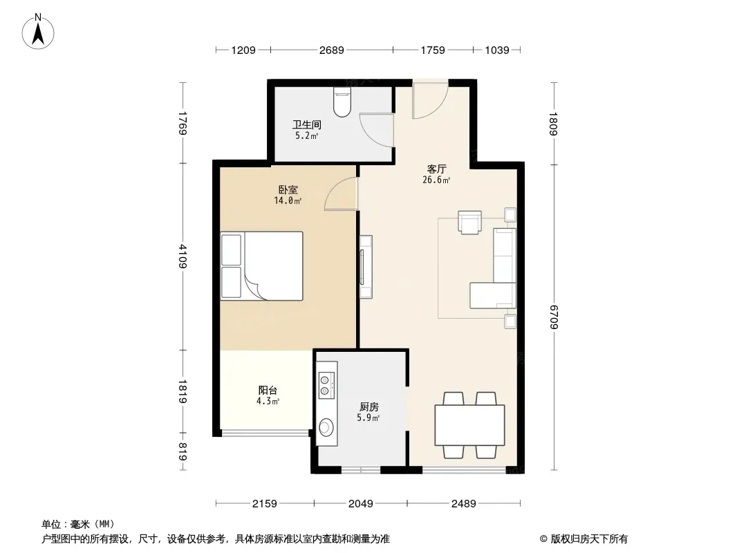 户型齐全,主打户型方正,明厨,双阳台一居