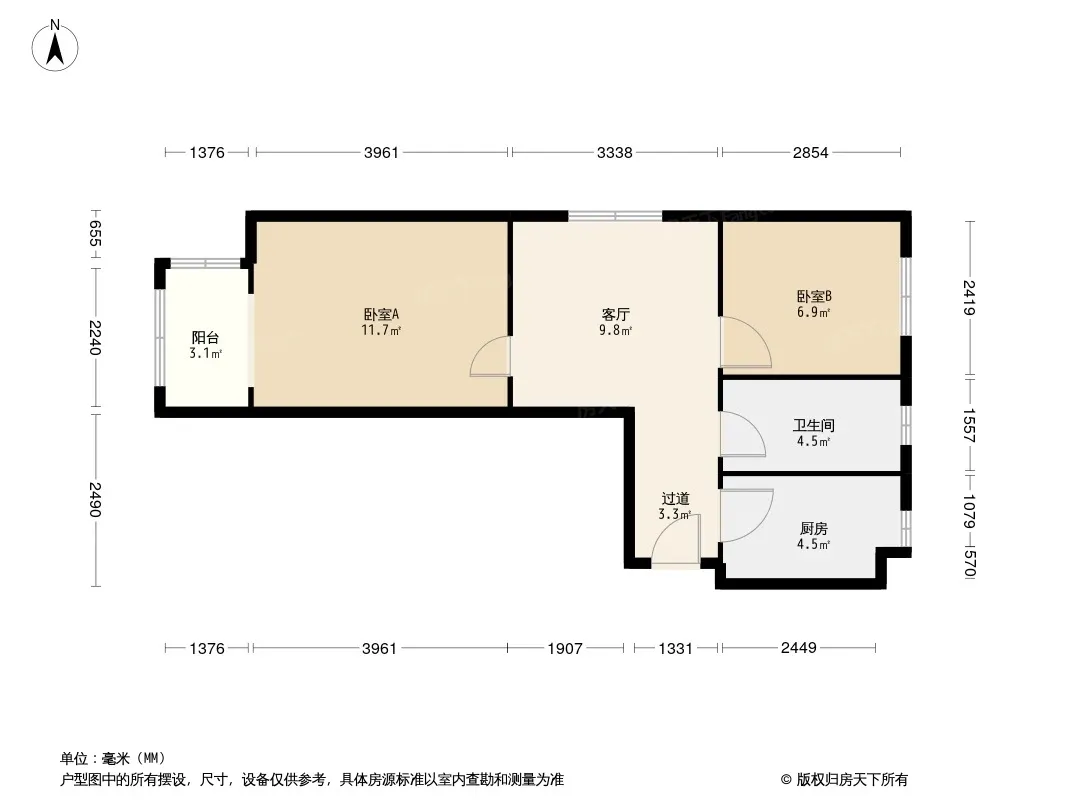 户型齐全,主打客厅朝南,主卧朝南二居