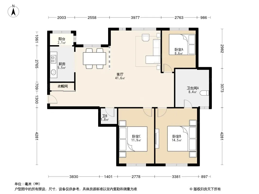 户型齐全,主打户型方正,明厨,主卧朝南三居