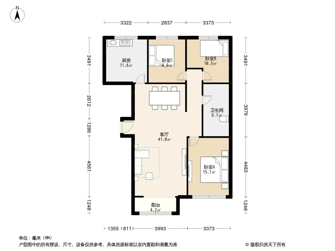 户型齐全,主打户型方正,明厨,主卧朝南三居