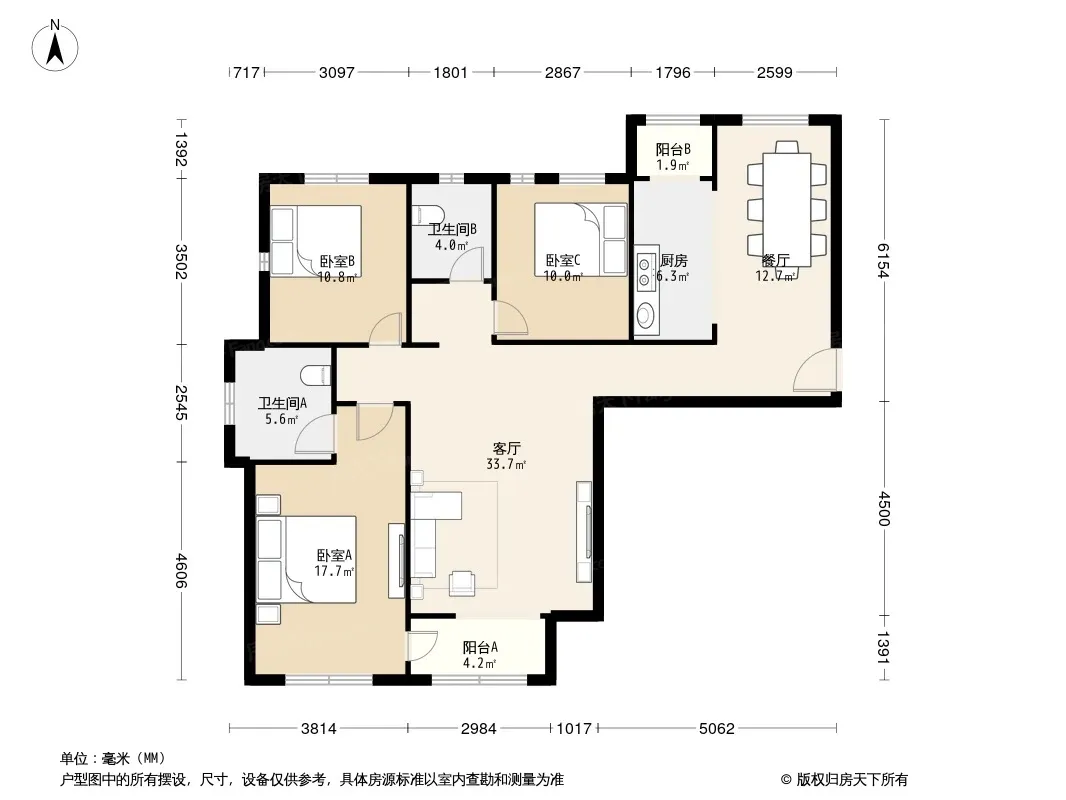 户型齐全,主打户型方正,明厨,主卧朝南三居