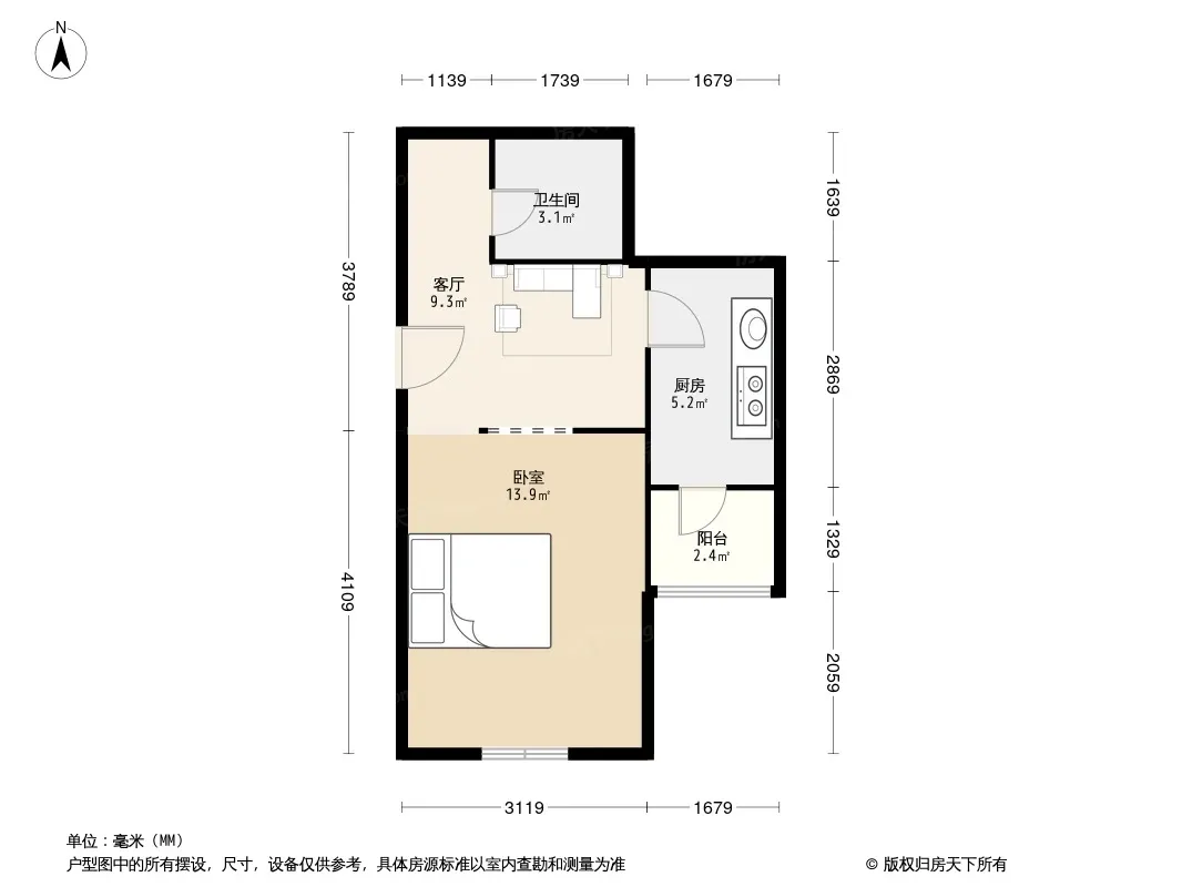 户型齐全,主打户型方正,明厨,主卧朝南一居