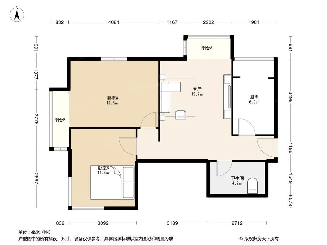 户型齐全,主打户型方正,双阳台二居