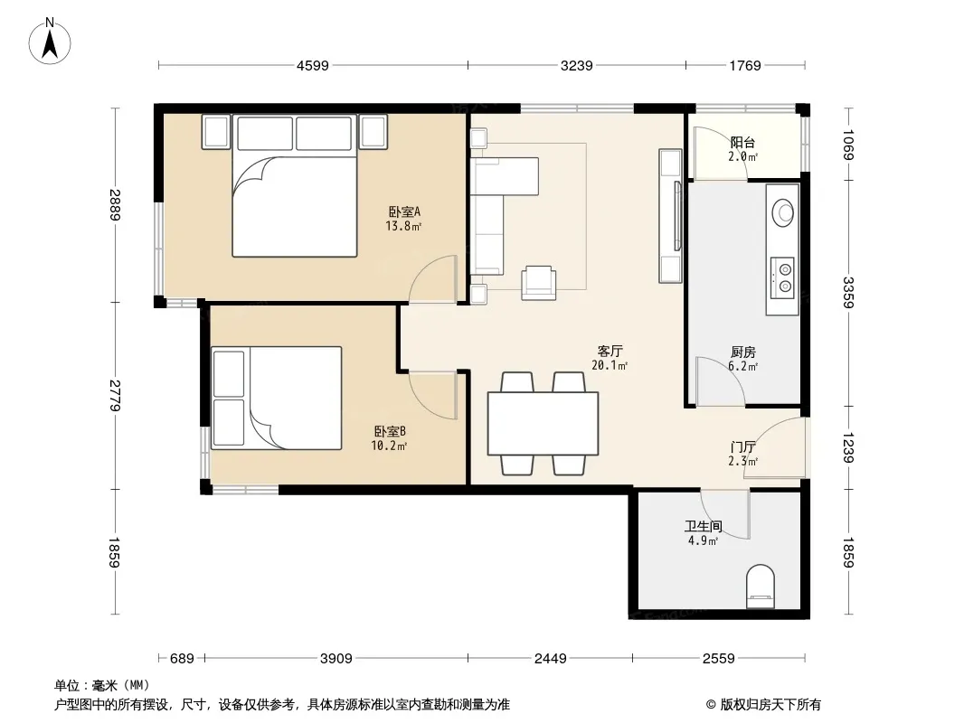 户型齐全,主打户型方正,客厅朝南,双卧朝南,主卧朝南二居
