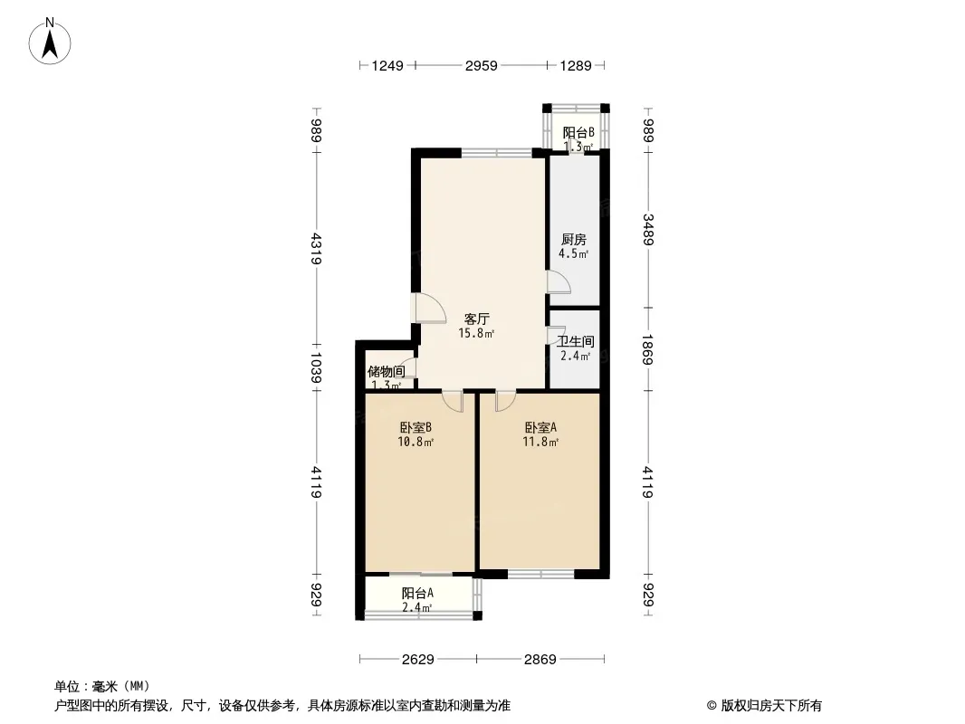房子是标准大两室 全明户型 采光不错