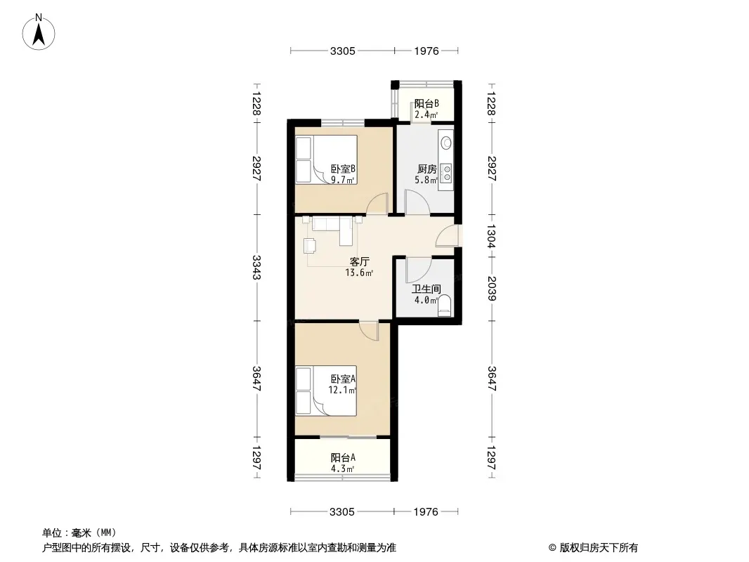 户型齐全,主打客厅朝南,双阳台二居
