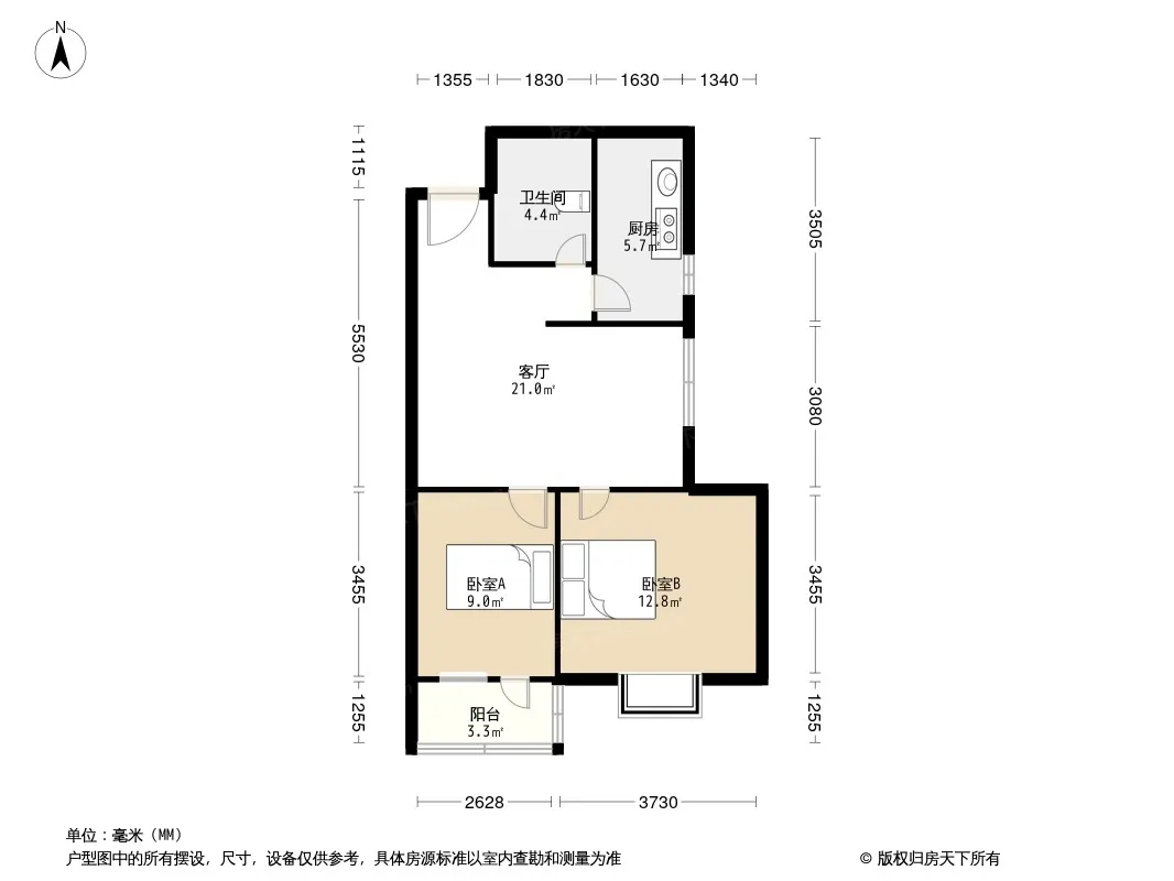 户型齐全,主打客厅朝南,双阳台二居
