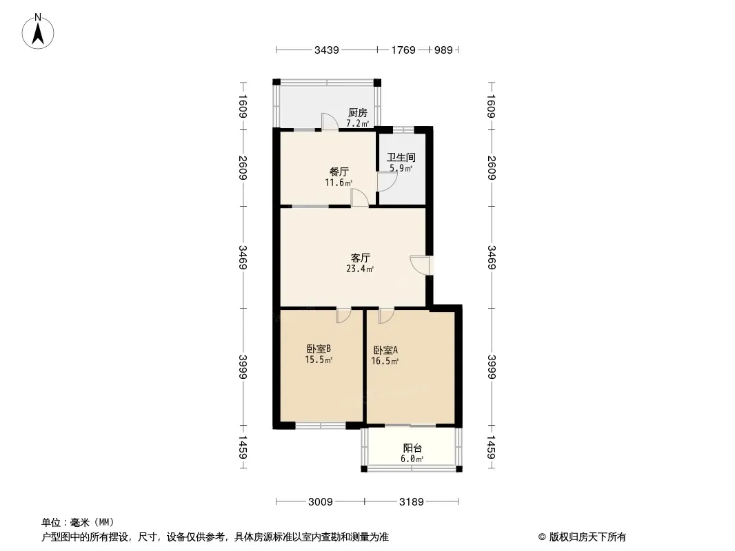 户型齐全,主打户型方正,明卫,明厨,客厅朝南,主卧朝南三居