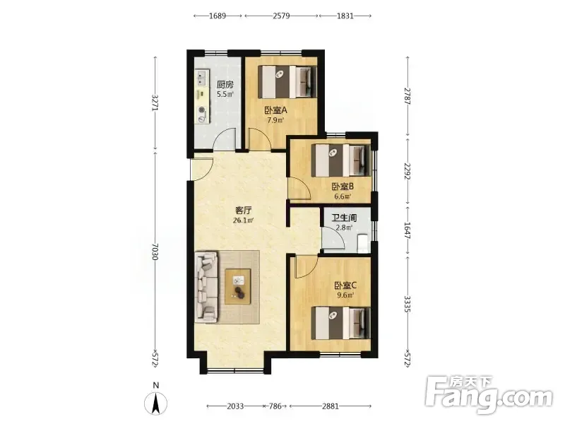 户型齐全,主打户型方正,明厨,双卧朝南二居