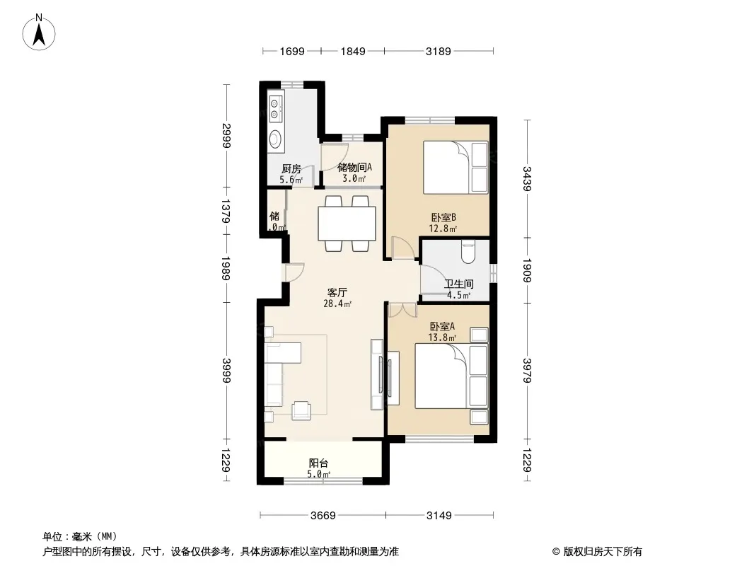 户型齐全,主打客厅朝南,双卧朝南,主卧朝南二居