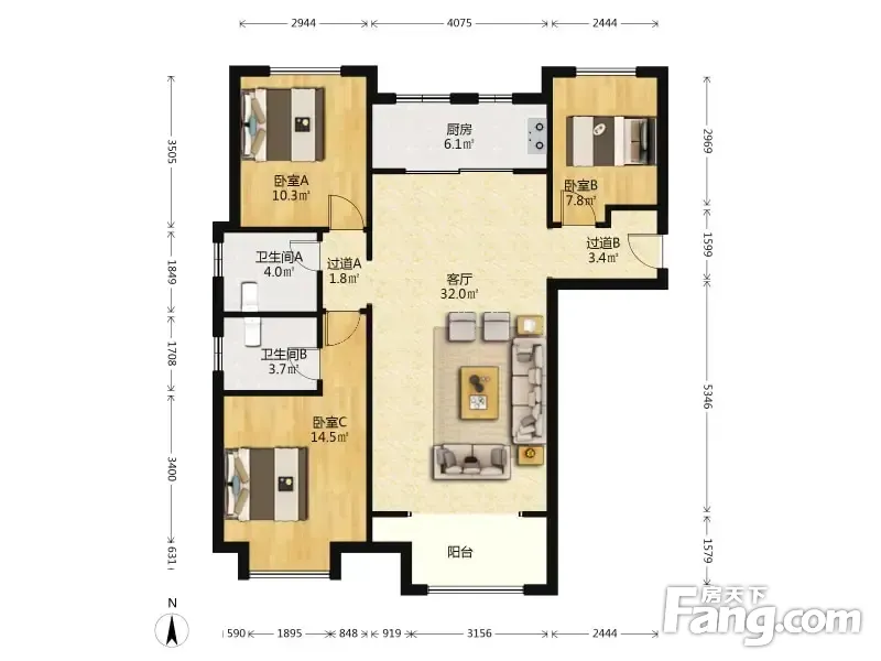 3室2厅1卫