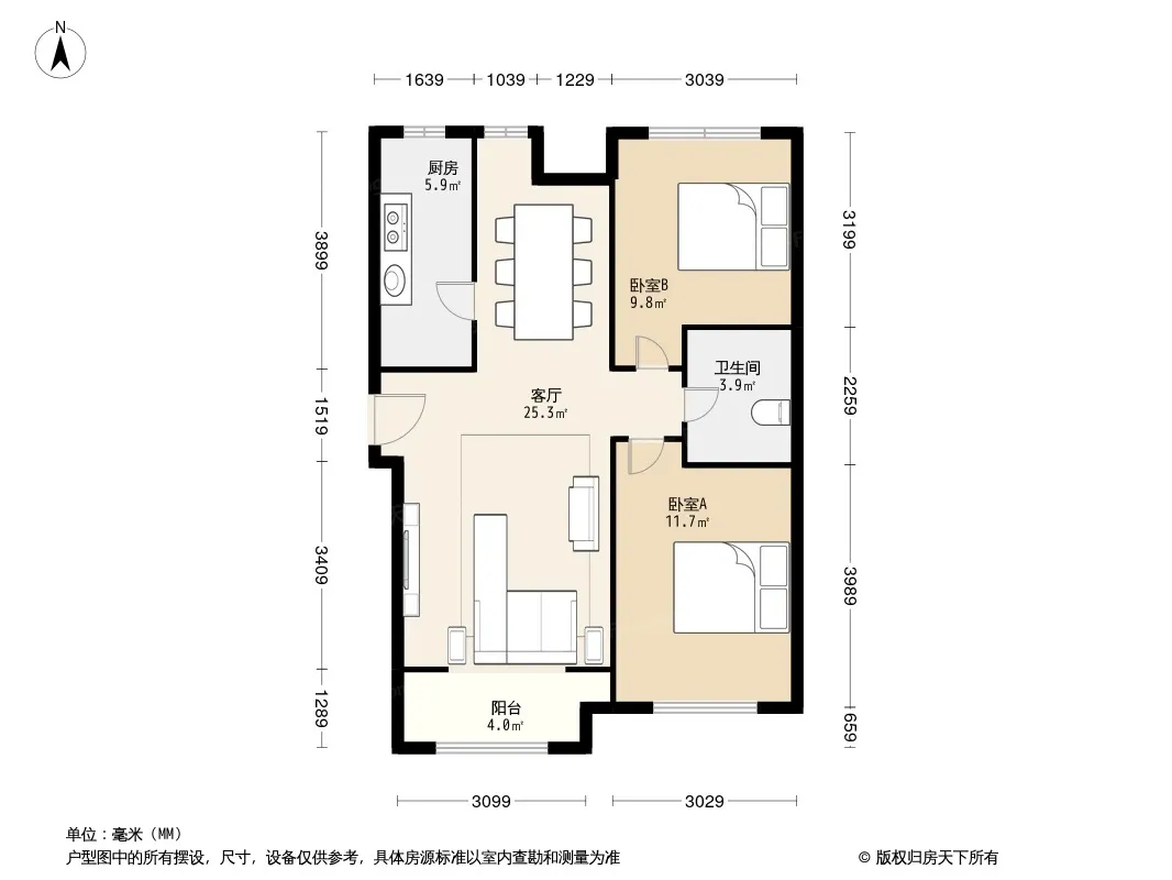 户型齐全,主打南北通透,客厅朝南,主卧朝南二居