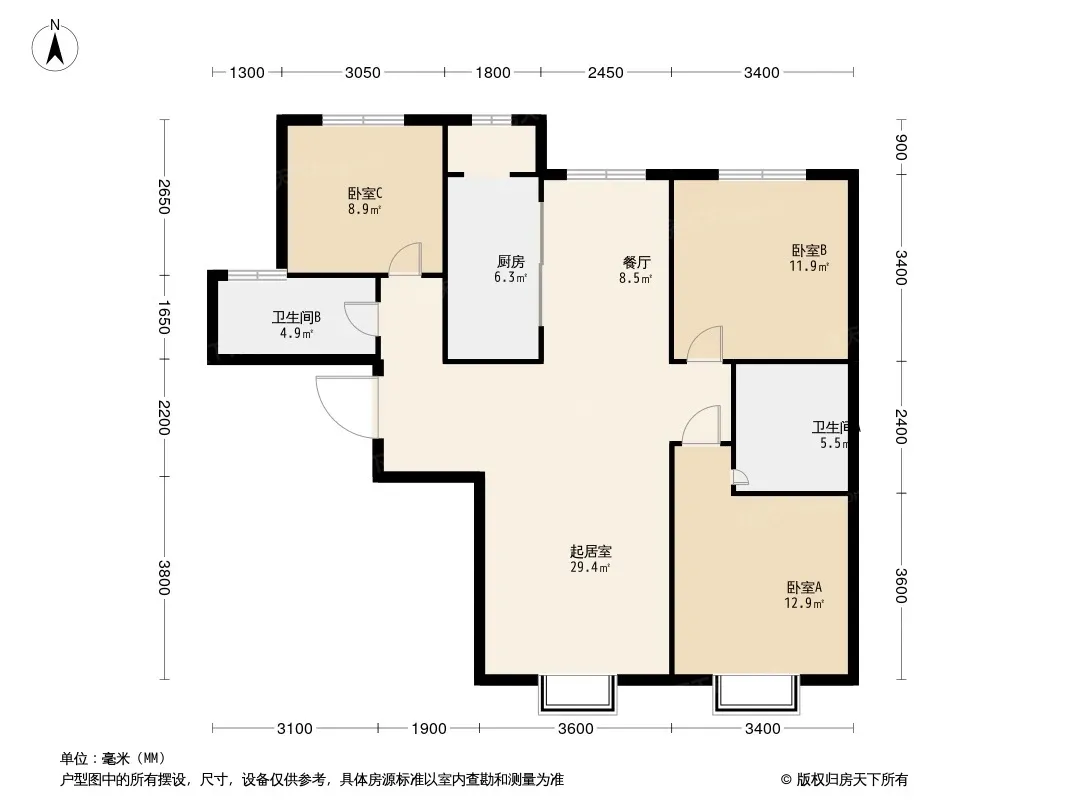 *获取完整户型报告,同时会有免费语音讲解服务