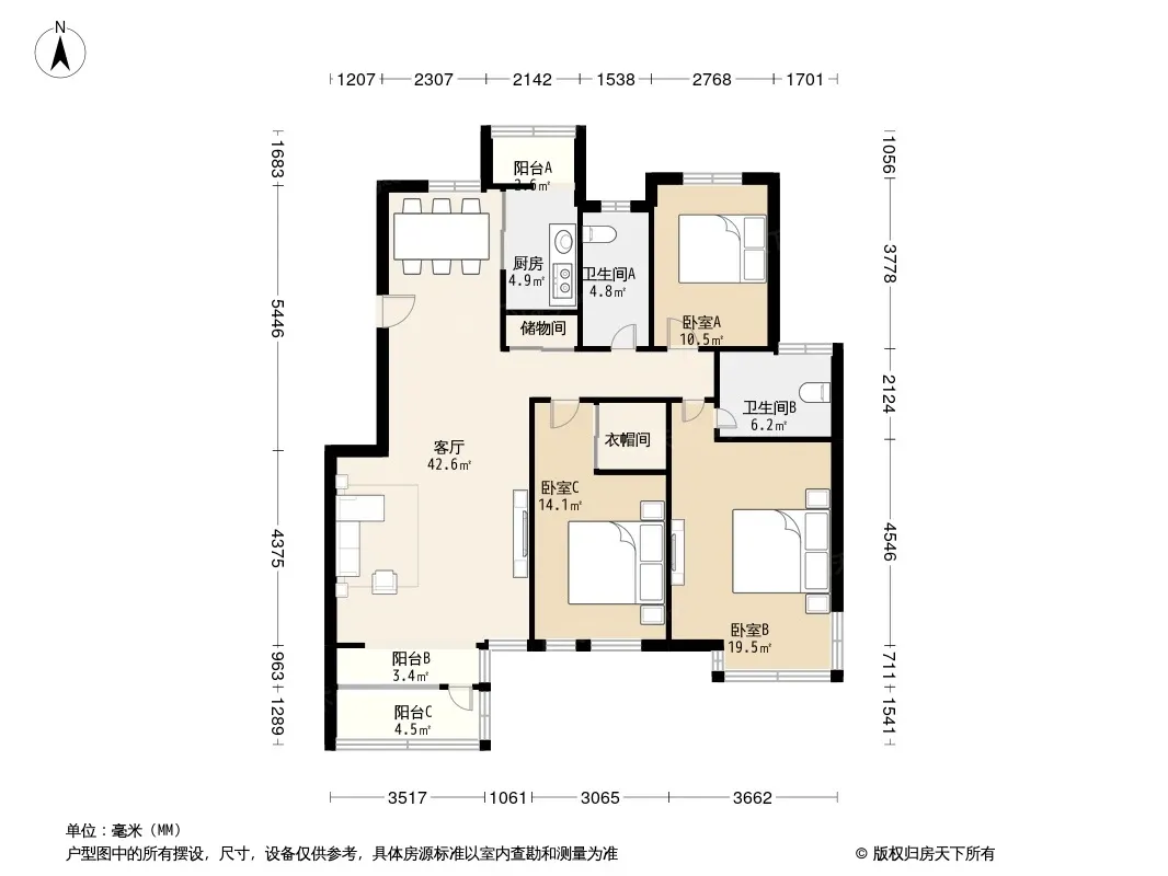 户型齐全,主打户型方正,明卫,独立衣帽间,明厨,主卧朝南三居