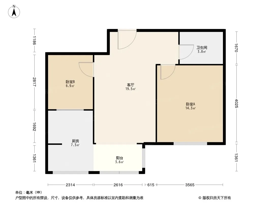 户型齐全,主打户型方正,明卫,主卧朝南二居