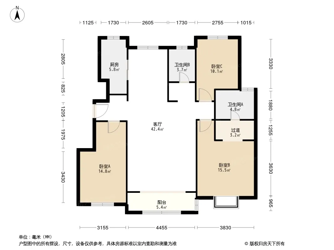 户型齐全,主打户型方正,明厨,主卧朝南三居