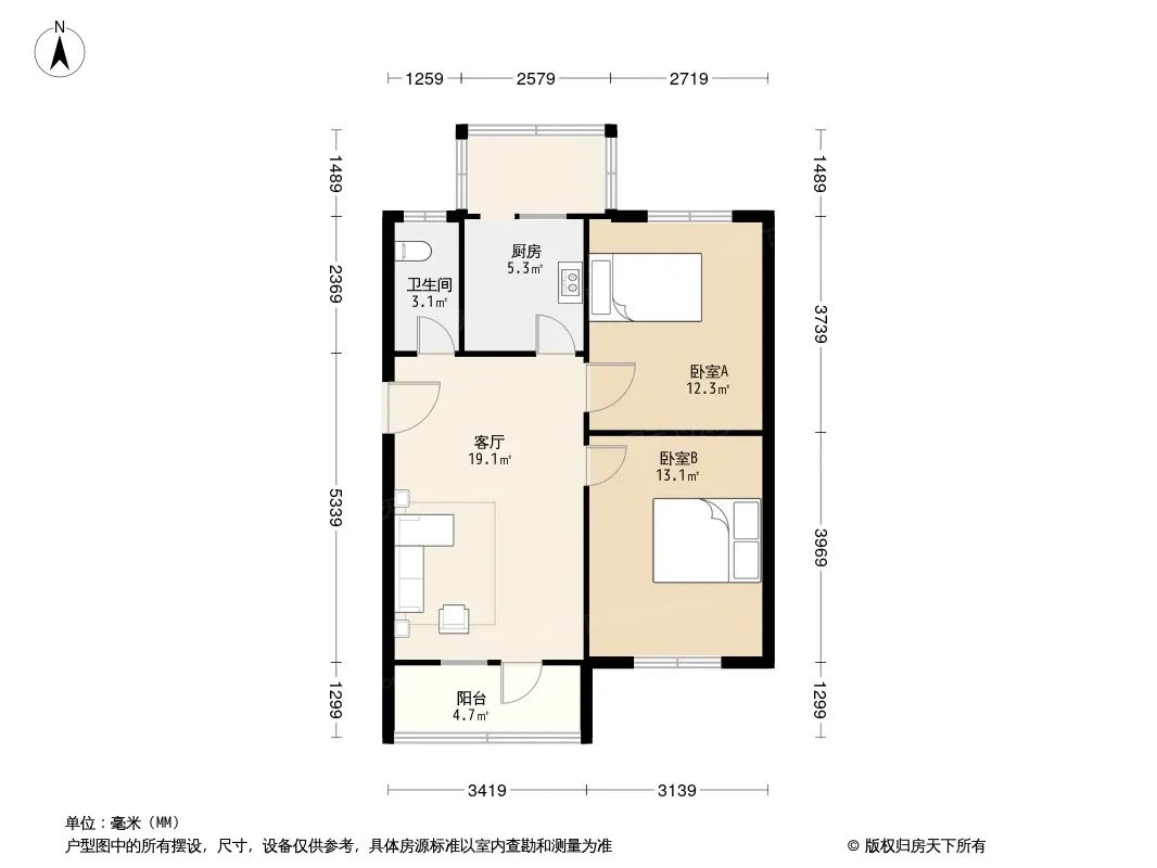 户型齐全,主打户型方正,明卫,客厅朝南,主卧朝南二居