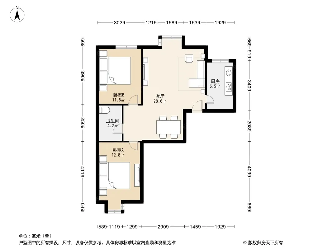 户型齐全,主打户型方正,明厨,明卫,客厅朝南,全明格局,主卧朝南二居