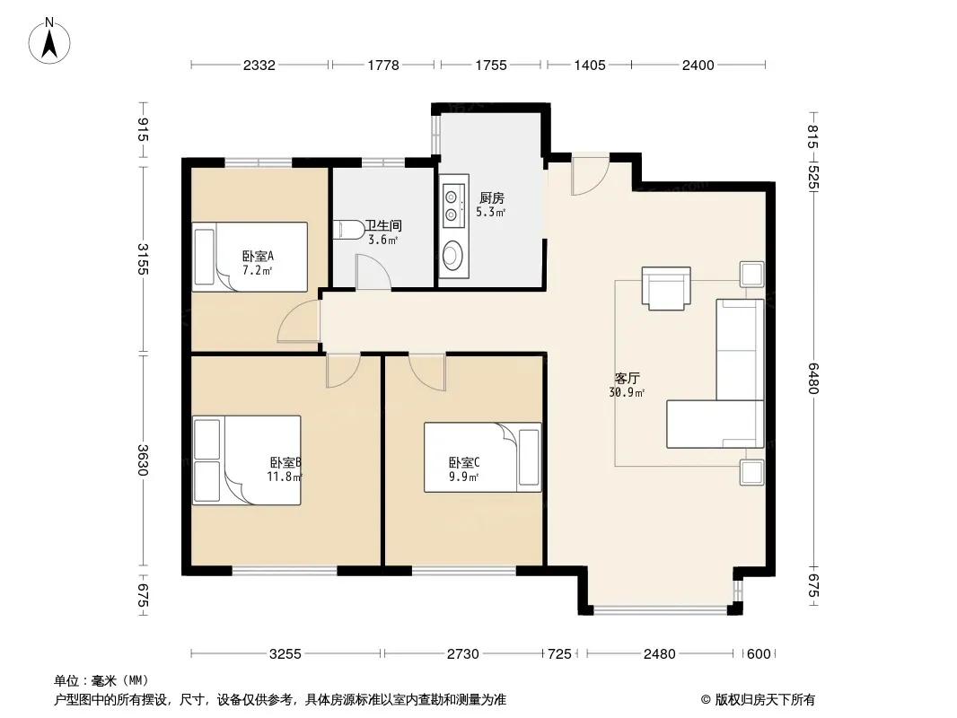 户型齐全,主打户型方正,明卫三居
