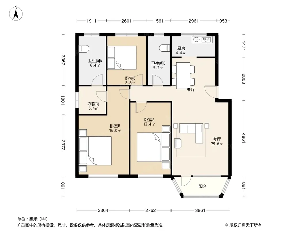 户型齐全,主打户型方正,明卫三居