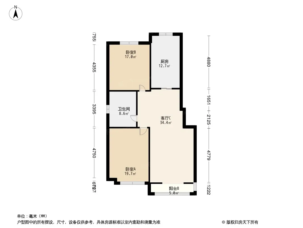户型齐全,主打明厨,明卫,客厅朝南,全明格局,主卧朝南二居