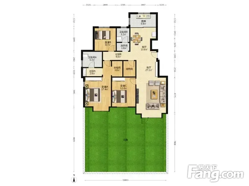 房屋拥有相对宽松的尺寸,布局通透,动静分离,设计豪华