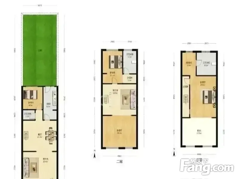 小区于2019年交房,房龄新,环境好,3层的联排别墅,独门独户,北入户,南小院,北侧能停两辆车,共4个卧室,客厅6.1米跳空(已做挑空)采光充足,每层一个卫生间
