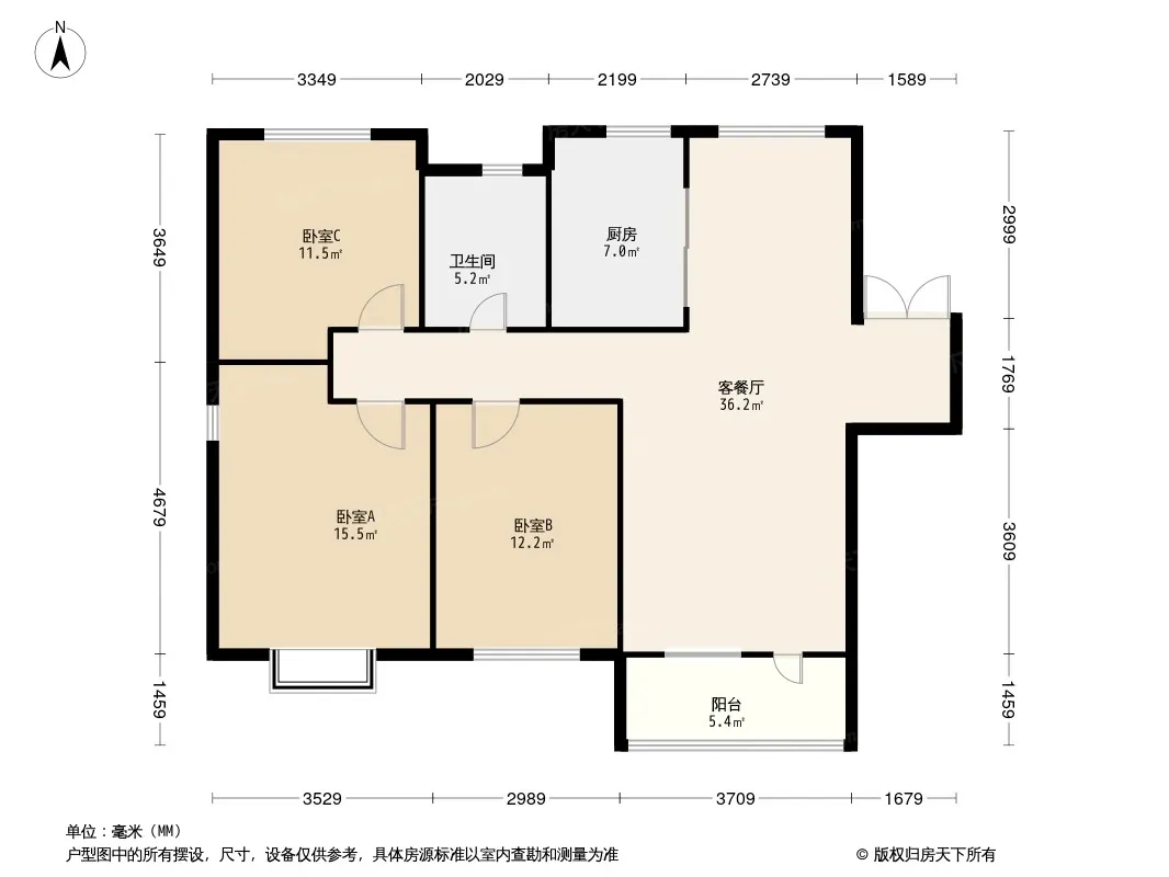户型齐全,主打南北通透,全明格局,户型方正三居