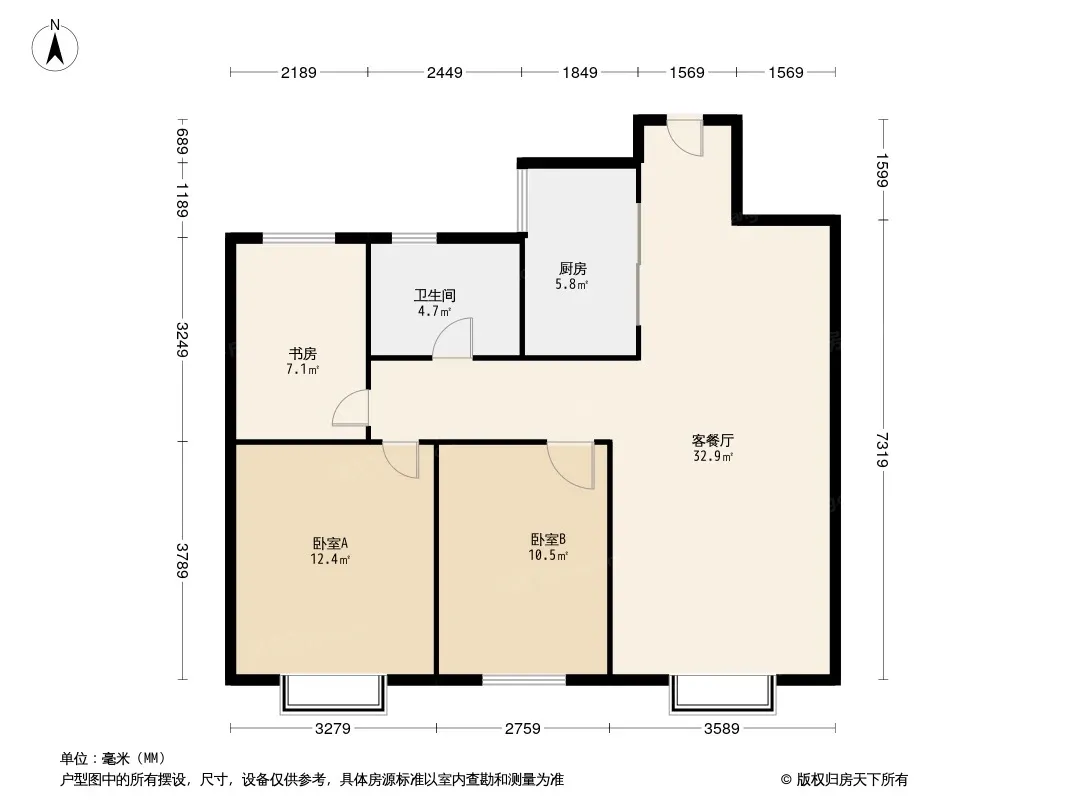 户型齐全,主打南北通透,全明格局,户型方正三居